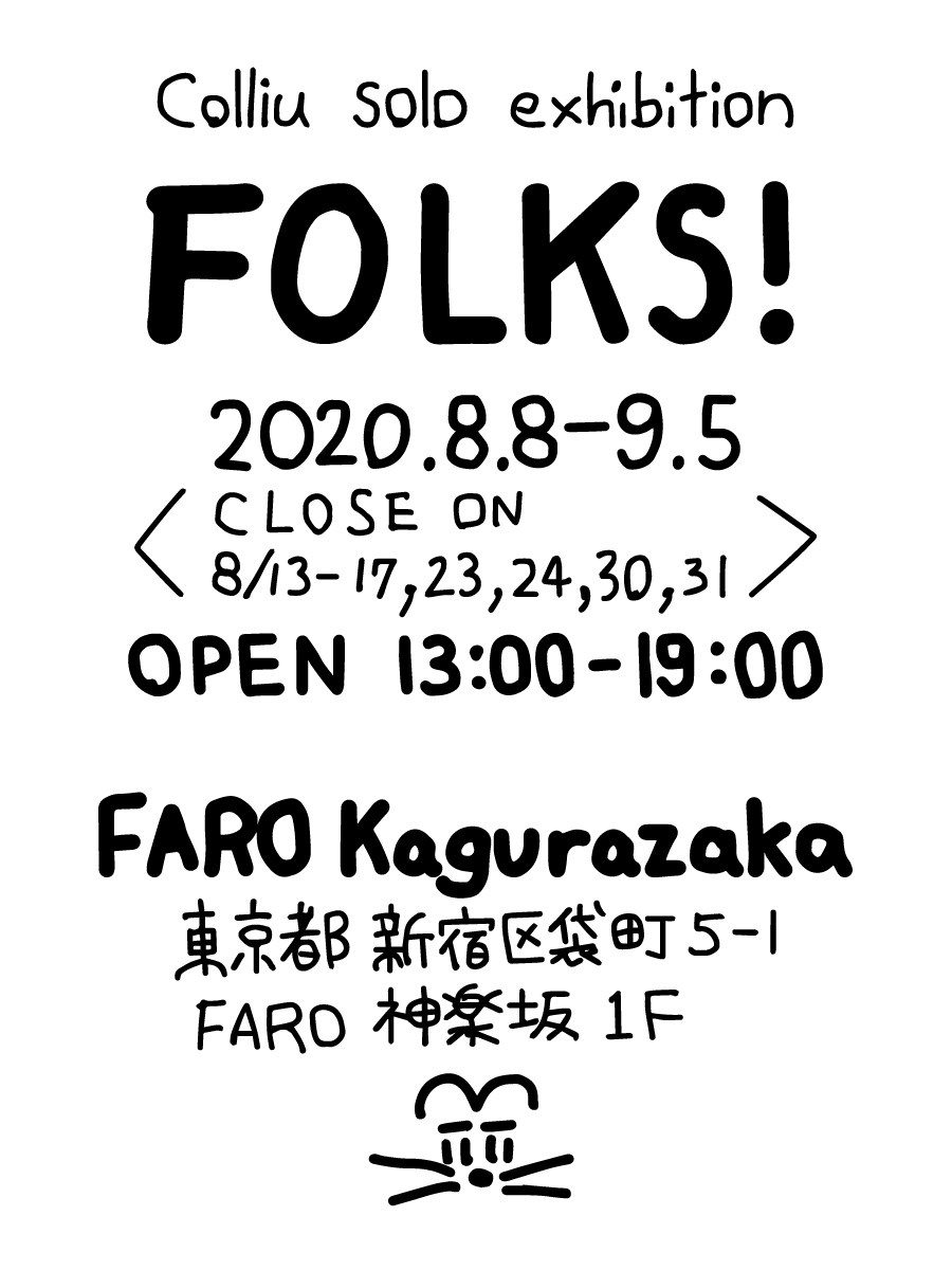会期:2020年8月8日(土) – 9月5日(土)13:00 – 19:00